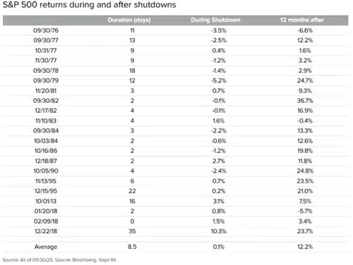 The shutdowns in the 1970s and 1980s occurred against a backdrop of rising inflation, leading to a period of stagflation. The most recent one happened at the very end of a Fed rate increase cycle, followed by a change in its opinion on the economy and cuts in 2019. Those are just some examples of other factors that affected returns during and after the shutdown.